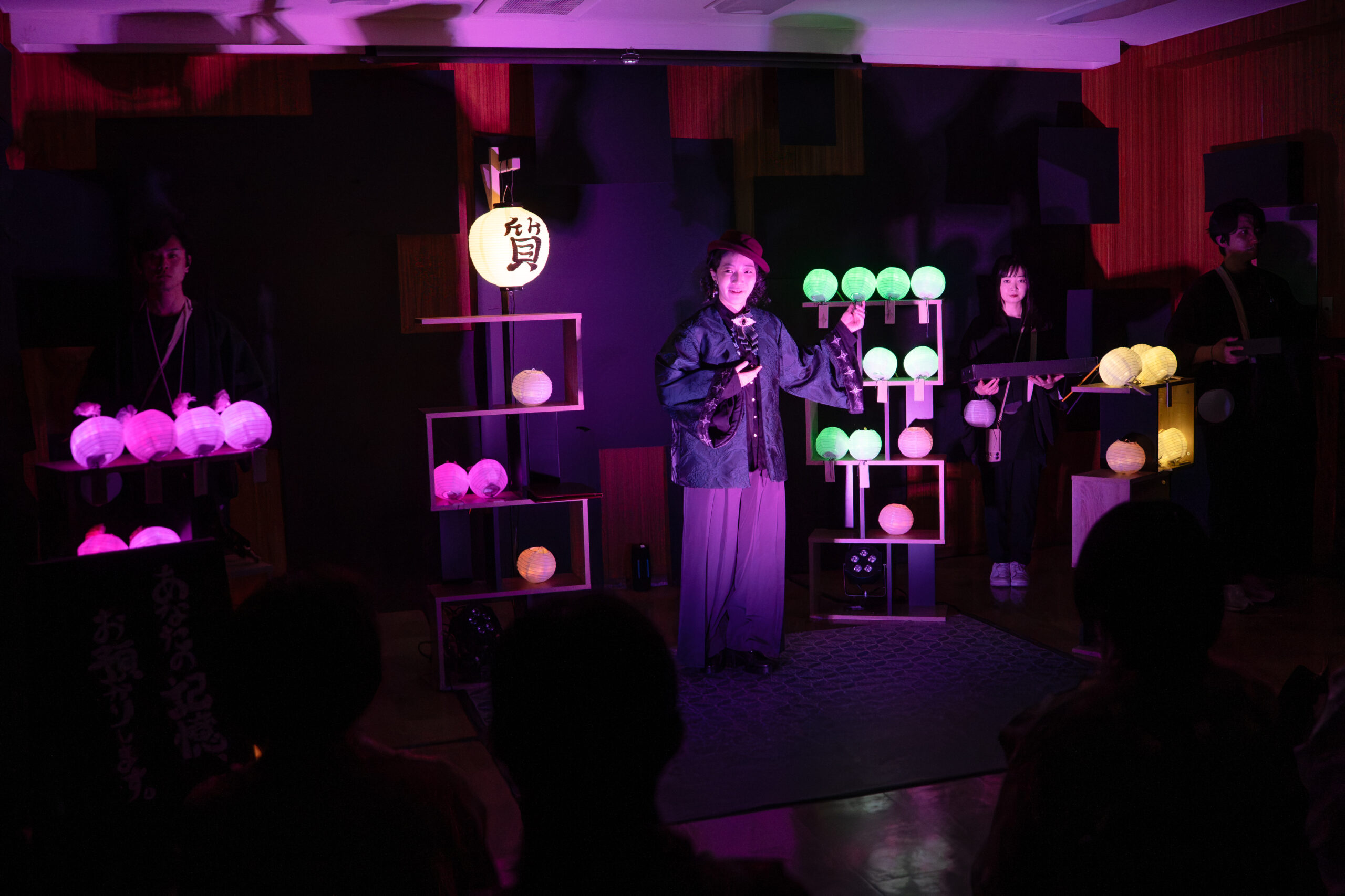 黒い羽織を着た”灯り番”たちに誘導されながら少し歩くと、現代の神楽坂の街の中で、昭和や明治の時代の人物――役者扮するキャラクターに出会う。